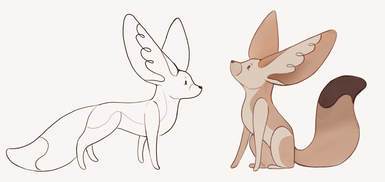 Zodra de grote lijnen zijn uitgezet voor Echo, maakt artist Stephanie Stamenova (Stufa) mooie schetsen voor de karakters. Hier zien we de ontwikkeling van de hoofdrolspelers: een jongen en zijn trouwe metgezel, een schattige woestijnvos. De kleding is in de uiteindelijke versie een stuk eenvoudiger gehouden.